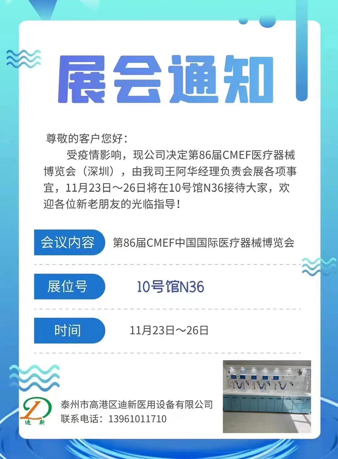 查看詳情尊敬的客戶您好: 受疫情影響,現(xiàn)公司決定第86屆CMEF醫(yī)療器械博覽會(深圳),由我司王阿華經理負責會展各項事宜,11月23日~26日將在10號館N36接待大家,歡迎各位新老朋友的光臨指導!......